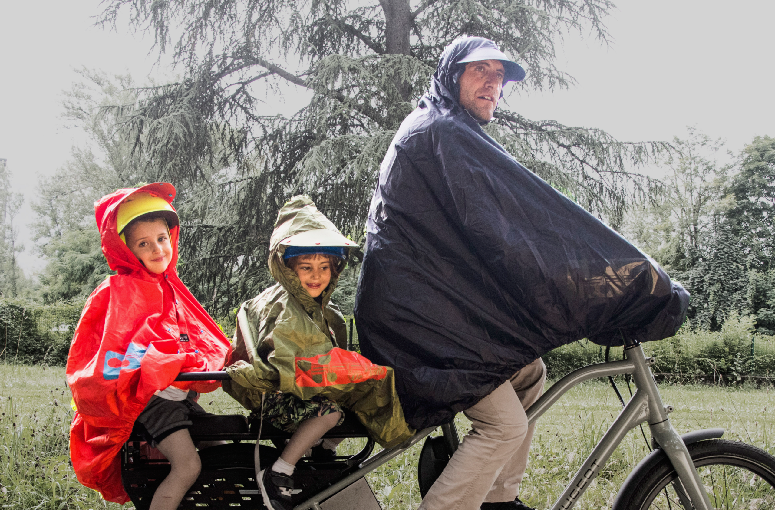 Nos produits sont conçus à partir de polyester RIPSTOP, un tissu léger et très résistant, fabriqué à partir de bouteilles plastiques recyclées. Imperméable (10 000 mm d'eau) , respirante, et sèche rapidement grâce à un traitement déperlant. Les coutures soudées sont complètement étanches et de gros motifs réfléchissants sur les côtés et derrière permettent de rester bien visible la nuit.